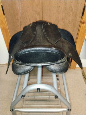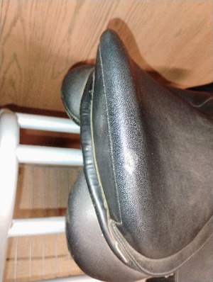 This saddle is like new, with very few rides in it. Practicality and comfort at its best. With a supportive seat and a durable leather look for easy care. Super soft panels that mold in and around your horse's muscles, hugging their conformation. Changeable gullet has a black medium gullet in the saddle. This saddle has an added balance strap. There is only 1 flaw in the saddle at the tip of the cantle.