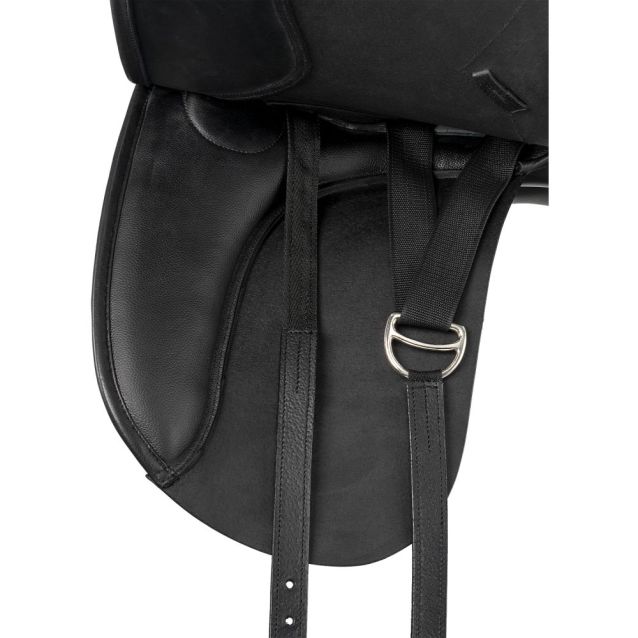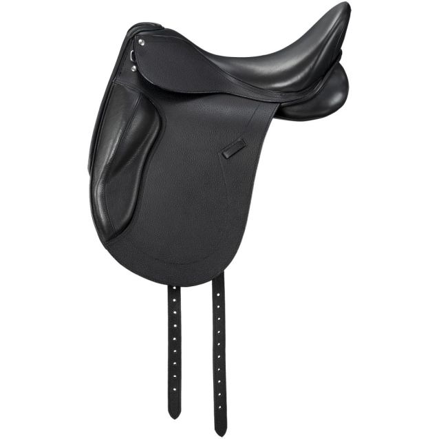 Hand crafted of soft, supple leather for comfort and a grippy finish to feel more secure in the extra deep seat. Flaps feature a large knee block and padded knee rest for a more stable, secure leg position and seat. Plastic tree for a consistent shape and comfortable ride. A great saddle to get you noticed in the dressage ring. Stainless steel stirrup bars and nylon lined leather billets for added security.