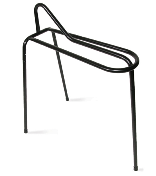 Durable Space Saver Saddle Stand is constructed of heavy duty tubular steel. Ideal for barn, tack room or trailer use. Breaks down for easy storage. 25" tall at center and 30" tall at the front.